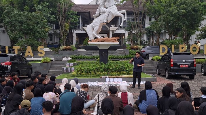 Mahasiswa Universitas Diponegoro (Undip) menggelar demonstrasi damai di Widya Puraya, Rabu (25/02). Gerakan yang diinisiasi oleh Badan Eksekutif Mahasiswa (BEM) Undip ini merupakan